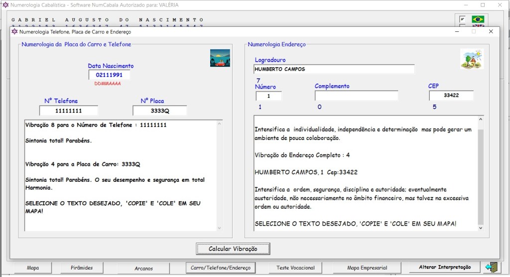 Mapa Numerologia Cabalística