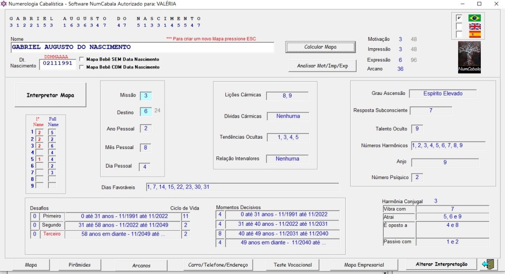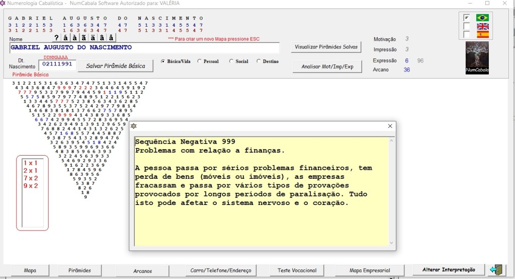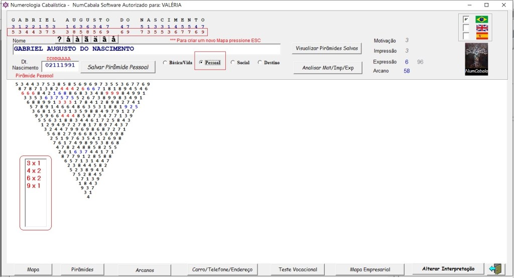NumCabala – Gera Mapas de Numerologia Cabalística – (todos os números cabalísticos + 4 Pirâmides invertidas + Arcanos do Tarô)